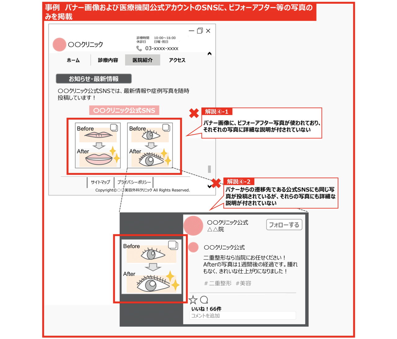 要は、「広告で勝手に流れてくる」ようなものにビフォーアフターは掲載不可です🙅
