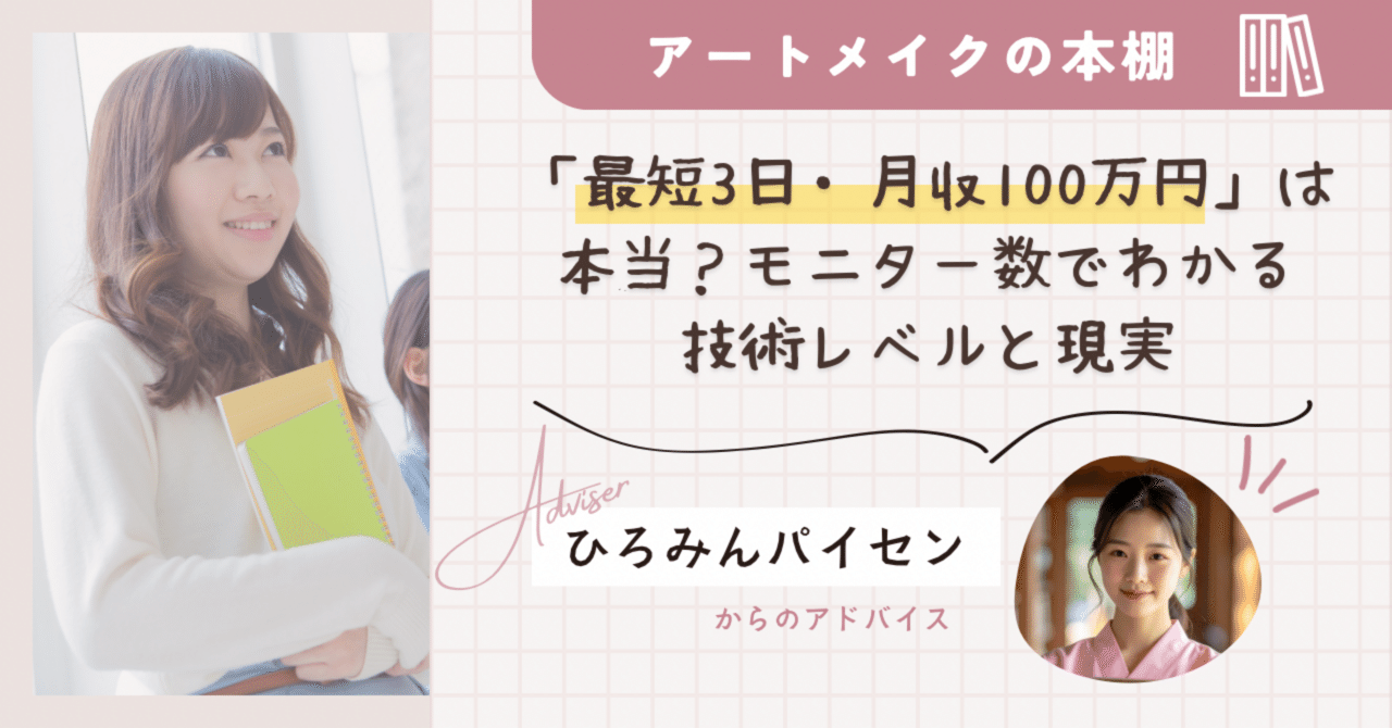 #アートメイク #アートメイクナース #アートメイクの本棚 #モニター #スクール #看護師 #フリーランス看護師 #スクール卒業後 #技術習得 #目標設定 #月収100万
